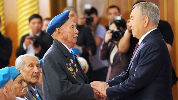 – Сегодня здесь присутствуют ветераны, отстоявшие свободу и мирную жизнь страны. Мы вручаем вам награды – ордена «Барыс» и «Кұрмет». Это лишь малая толика того, что нынешнее поколение может вам дать. Вся страна, весь мир благодарны вам за то, что вы защитили его от фашизма. Награждение ветеранов подчеркивает неразрывную связь поколений. Ваши подвиги на полях сражения и в мирной жизни останутся эталоном смелости и патриотизма. Лучшая награда для всех, кто добился Великой Победы, – это независимый Казахстан, процветающая страна, благополучие наших граждан. Это доказывает, что ваш подвиг был не напрасным. Сегодня ваше дело успешно продолжают новые поколения казахстанцев. Их заслуги признает страна, – сказал Нурсултан Назарбаев.