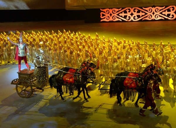 У этого действа была глубоко продуманная и сильная драматургия, яркое исполнение и горячее одобрение зрителей. В основу литературного сценария шоу легла книга Президента Казахстана Нурсултана Назарбаева "В потоке истории".