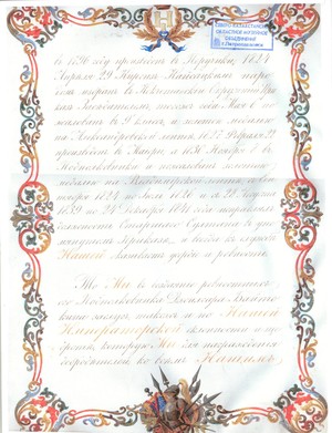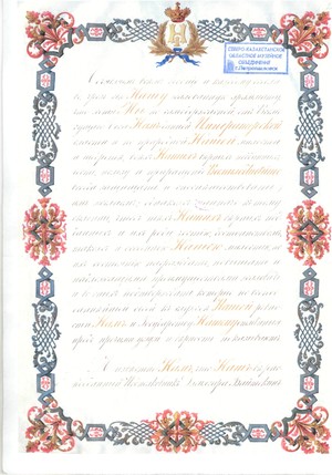 Грамота о присвоении дворянства Жылгаре Байтокину