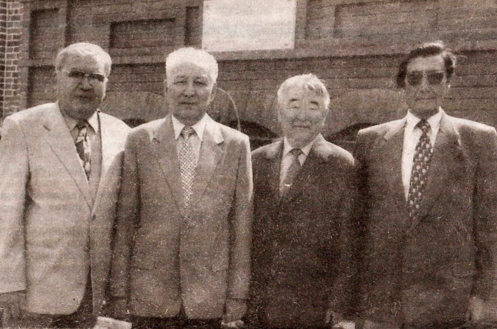 Суретте: Ұлттық ғылым академиясының академиктері: (солдан оңға қарай) Сағындық Сатыбалдиң Кенжеғали Сағадиев, Манаш Қозыбаев және Өмірзақ Сұлтанғазин.