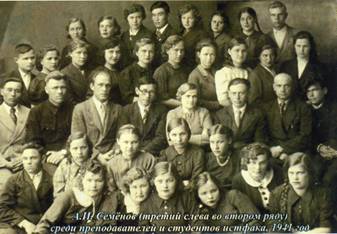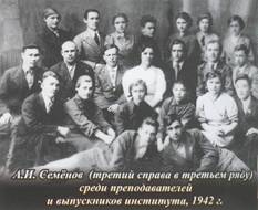В это время открытый в нашем городе в 1937 году Учительский институт ещё не был полностью укомплектован преподавателями с высшим образованием, и часть дисциплин, в том числе и на кафедре истории, читалась специалистами с дипломом педагогического техникума. Неудивительно, что Семёнов без проволочек уже 1 августа вступил в должность заведующего кафедрой истории Учительского института. Преподавал Александр Игнатьевич историю СССР.