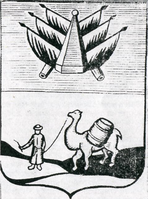 Такой двугорбый символ торгового обмена на своих гербах имели Омск, Семипалатинск. И не случайно -ведь это сильное животное на протя¬жении почти двух тысячелетий пе¬ревозило тюки с товарами. Изобра¬жение верблюда на гербе города означало, что главным промыслом данного города является торговля.