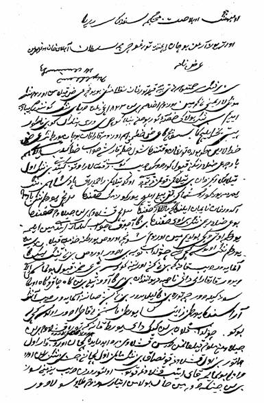Письмо султана Шамы Аблайханова омскому областному начальнику об отношении его и подведомственных ему людей