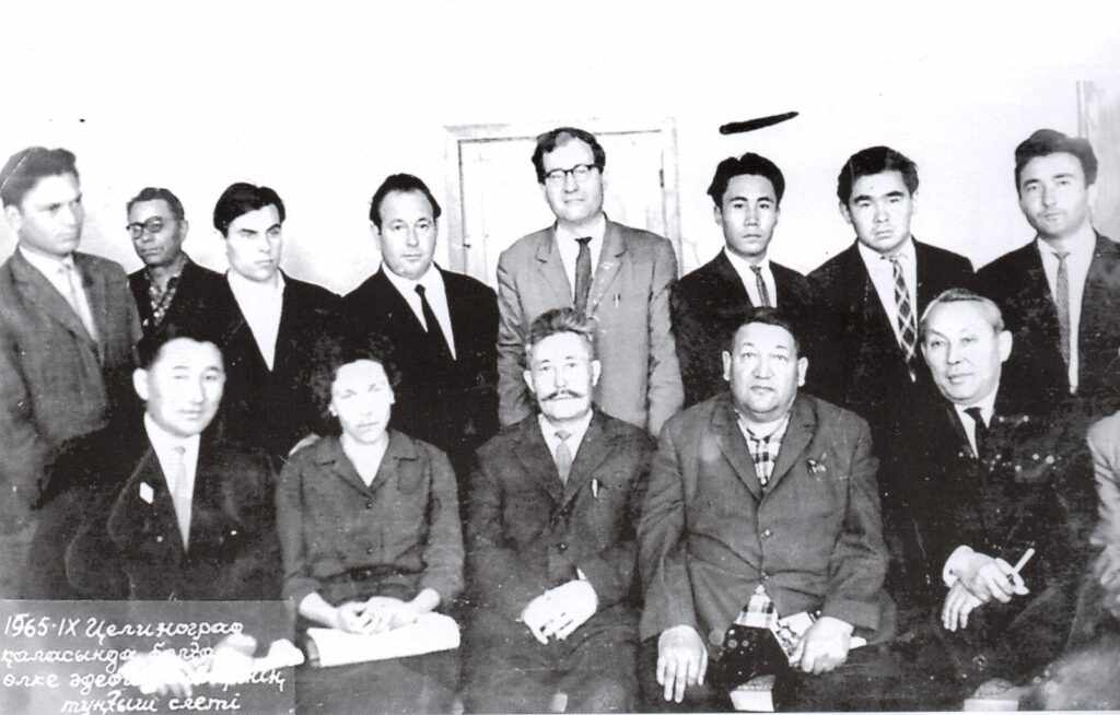 СУРЕТТЕ: Е.Қонарбаев (екінші қатарда оң жақтан бірінші) бір
