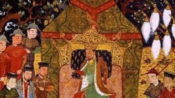 У ильхана Газан-хана (ильхан государства Хулагуидов, 1271–1304), по свидетельству его визиря и историографа Рашида ад-Дина, имелся роскошный золотой трон, усыпанный жемчугом и яхонтами. На одной из средневековых миниатюр Газан-хан сидит на троне вместе с женой Булуган-хатун. Сохранились и другие миниатюры с изображением трона ильханидов, который часто украшен лотосом и фигурами драконов. В миниатюре "Маджма ат-таварих" Хафизи Абру (XV век) представлены монгольские правители, сидящие на тронах с коронами на головах. Александр Юрченко отмечает также, что в каменных изваяниях в имперском заповеднике в Монголии (XIII–XIV) имеются изображения фигур в креслах.