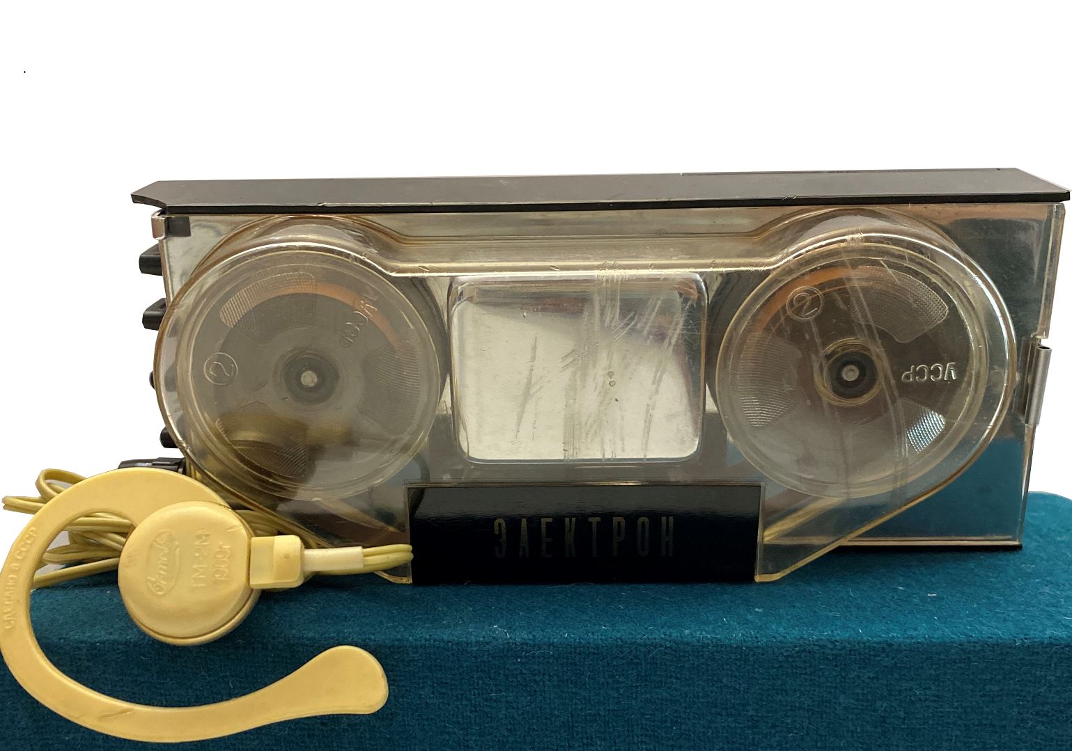 Диктофонның жалпы сипаттамасын айтатын болсақ, маркасы – «Электрон. Модель 52 Д». 1968 жылы Украинаның Полтава қаласында жасалған. Өлшемі 165х70х50 мм, салмағы 0,5 кг. Басқару жүйесіне тоқталатын болсақ, диктофонның сол жақ бүйрінде П, В, З, С әріптерімен тетікшелер орнатылған. Осындағы «П» әрпі жылдам айналдыруға арналған тетікше болса, «В» таспаға жазылған материалды ойнату тетікшесі, ал «З» таспаға материалды жазу тетікшесі, соңғы «С» ерекше қызыл түспен боялған, бұл жазбаны тоқтату тетікшесі. Диктофон «Крона» батареясымен жұмыс жасайды. Құрылғыда таспаға жазылған материалды естуге арналған алмалы-салмалы құлаққап бар. Ол тек оң құлаққа қойып тыңдауға арналған. Қалтаға, қолға ұстап жүргенге өте ыңғайлы бұл құрылғы жазушы, журналистерге өте қажет, таптырмас дүниенің бірі. Бұл ерекше құнды жәдігер келушілерімізді де қатты қызықтырады. Қаламгер музейіне оның жұбайы Мариям Мұқанова 1978 жылы сыйға тапсырған.