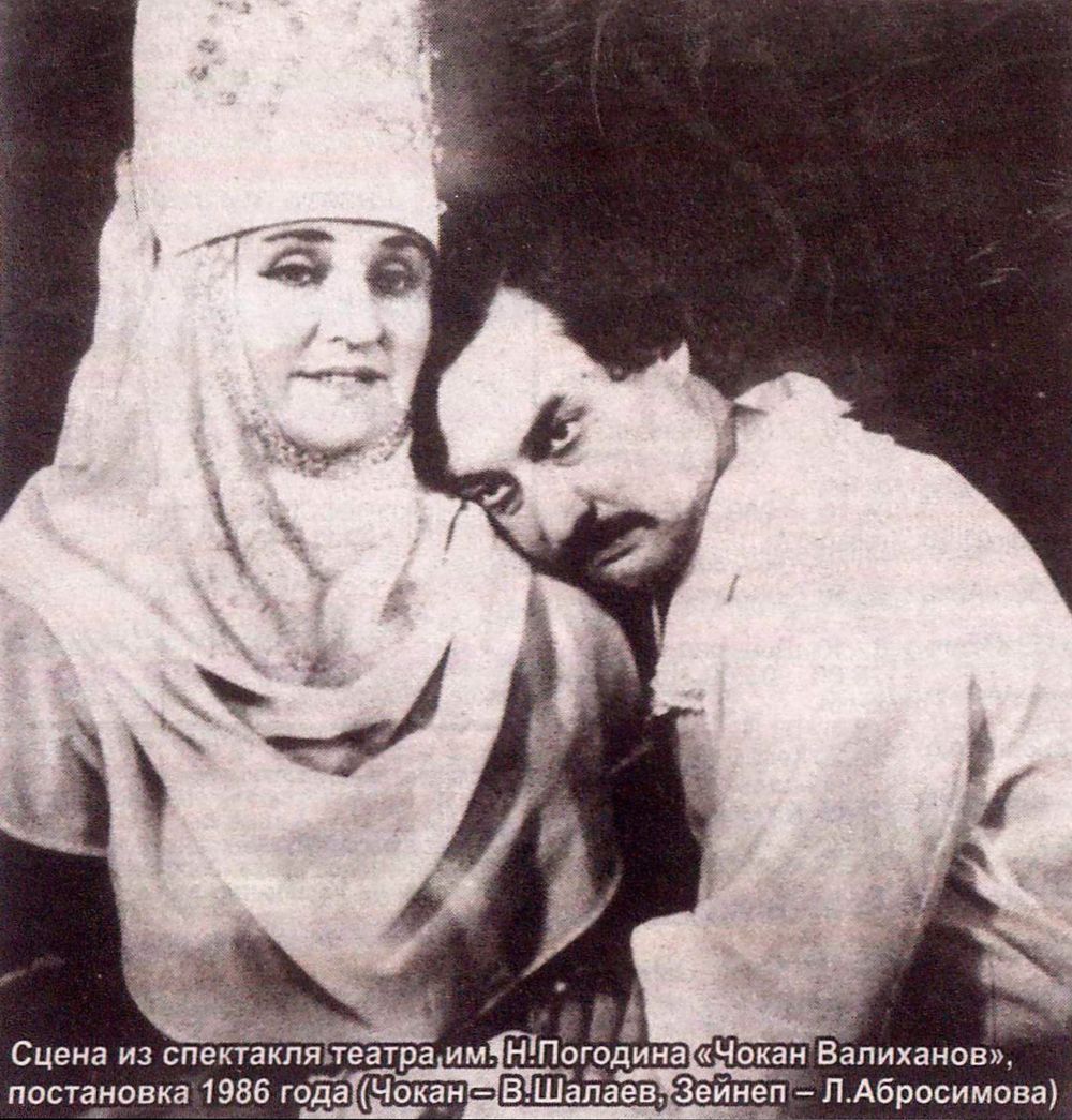 Этому театру Сабит Муканов доверил первую постановку своей исторической драмы «Чокан Валиханов» на русском языке и оказал содействие в работе над спектаклем. Петропавловский театр и впоследствии дважды обращался к этой пьесе именитого земляка. Постановка 80-х годов была показана в Москве во время отчетных гастролей нашего театра в столице Советского Союза и получила высокую оценку.